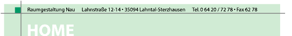 Nau Georg Sterzhausen Lahntal Marburg Raumausstattung Raumgestaltung Raumausstatter Marburg-Biedenkopf Renovierung Fensterdekoration Gardinen Sonnenschutz Markisen Insektenschutz Bodenbelag Bodenbeläge Fussboden Boden Fussböden Fußböden Fußboden Parkett Dielen Laminat Kork PVC Linoleum Polster Polsterarbeiten Polsterreparaturen Reparaturen Stoff Stoffe Polsterstoff Möbelstoff Polstermöbel Polstermöbelrestauration Polstermöbelrestaurierung Möbelrestaurierung Möbelrestauration Spanndecken Lackdecken Wandbespannung Malerarbeiten Maler Tapete Tapeten Glasgewebe Jalousetten Jalousien Plisee Rollo