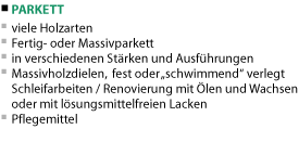 Fußboden Parkett Dielen Laminat Kork PVC Linoleum Polster Polsterarbeiten