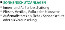 Fensterdekoration Gardinen Sonnenschutz Markisen Insektenschutz Bodenbelag